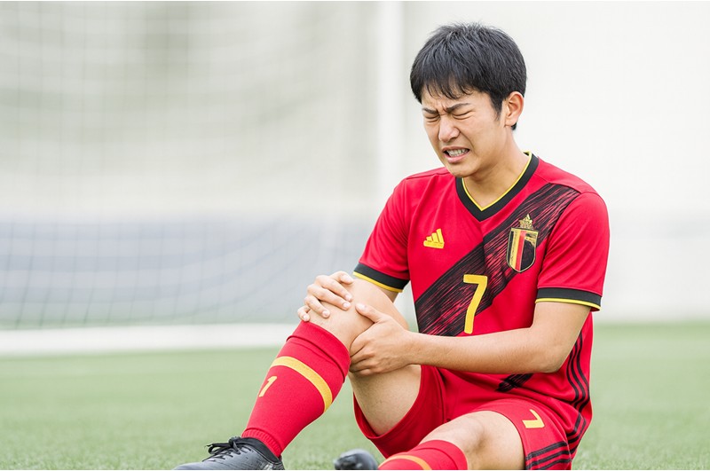 もちろん、サッカーやバスケ、ラグビーなどの接触プレーによるケガ(打撲・捻挫・靭帯損傷など)で膝に直接外傷がある場合もあります。